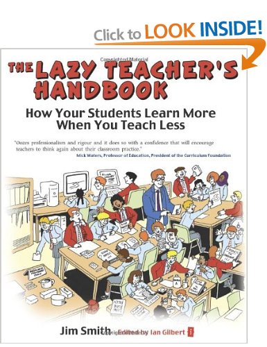 The Lazy Teacher’s Handbook, written by Jim Smith and edited by Ian Gilbert has been around for a few years now (published in 2010). In the book itself Jim Smith readily acknowledges that the title may be a little controversial but the intent is not to encourage teachers to be lazy in the sense that they are putting their feet up, being complacent and watching their classes flounder. The aim is really to encourage teachers to make the most of the resources, ingenuity and general creativeness that a class full of children provide. The idea is that the students themselves can be used as a learning, planning and assessing resource to maximise the benefit to learning without spending massive amounts of time planning, assessing and all those other things teachers do on a day to day basis.